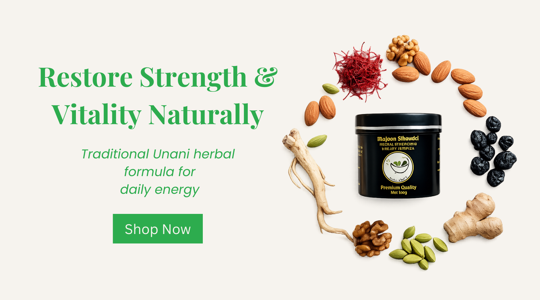 A 100% herbal Unani formulation, carefully prepared for daily wellness and vitality.